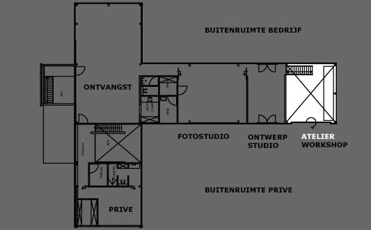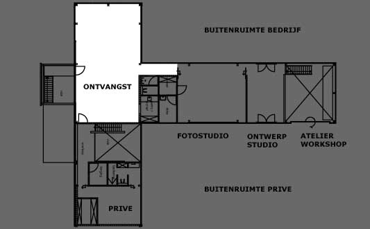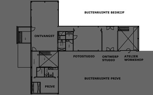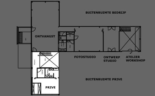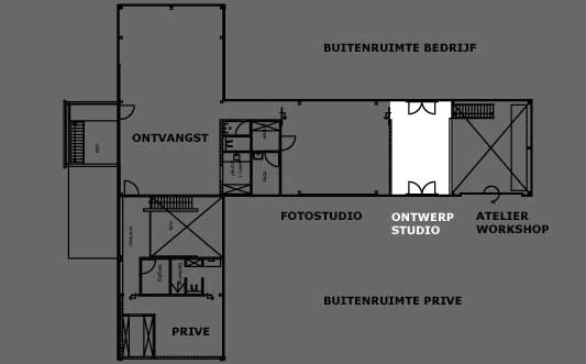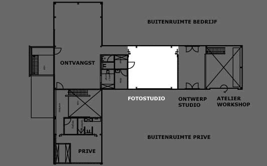 Het bedrijf bestaat uit een ontwerpstudio, kantoren, fotostudio, werkatelier, archiefopslag en ontvangstruimtes zowel binnen als buiten.