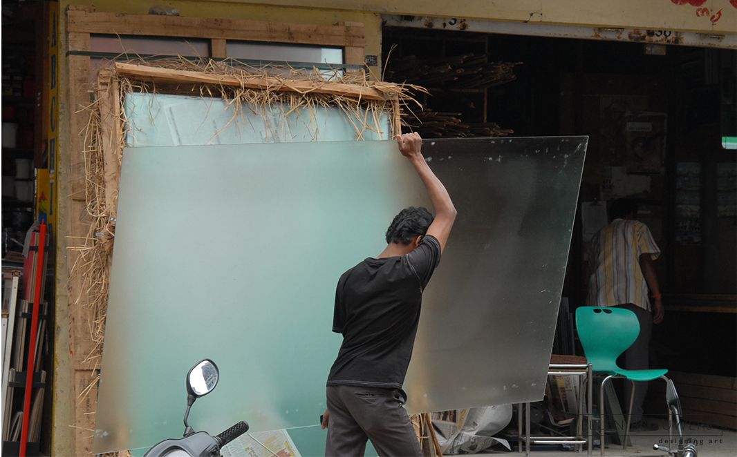 Glas kan met verschillende technieken bewerkt worden bijvoorbeeld keramische zeefdruk, zandstralen en andere combinaties.