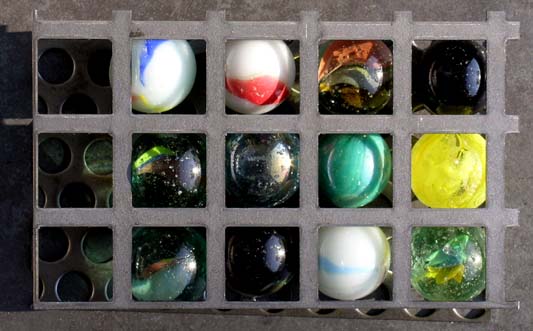 Twee aluminium geperforeerde platen, 44 rijen met 2024 stuks 60 mm knikkers, glashelder paneel met LED tekst