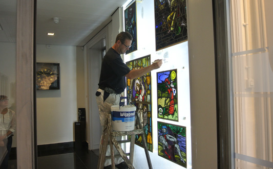 Diverse glas in lood panelen samenvoegen en aanlichten.