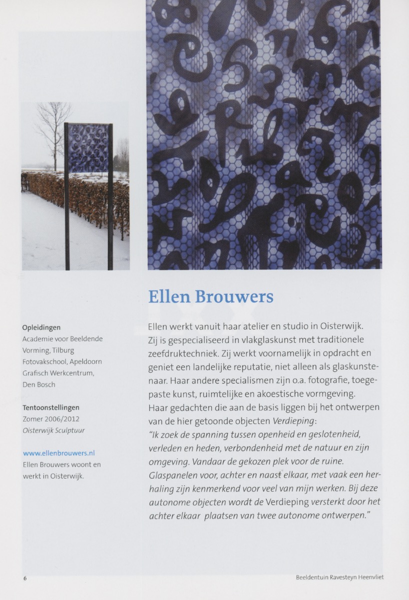 Bij ruïne Ravesteyn is ‘VERDIEPING’ getoond. Deze acht objecten verbonden met de natuur en zijn omgeving. Werden versterkt door het achter elkaar plaatsen van twee autonome glas ontwerpen.