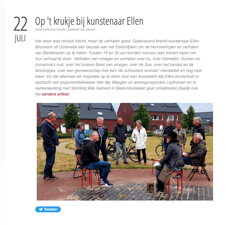 Monument in samenwerking met Stichting Welgement; participatie bewoners. 22 juli 2022; In dialoog ter inspiratie.