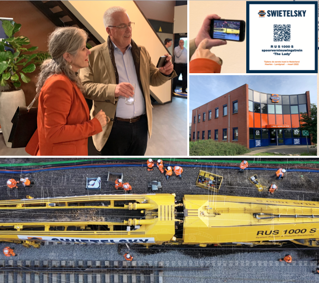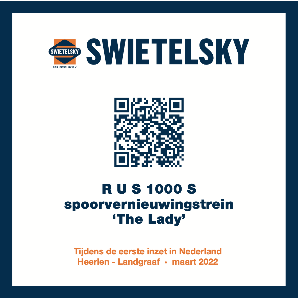 In gebruiksname QR code R U S 1000 S spoorvernieuwingstrein door Bestuurder SWIETELSKY Rail Benelux B.V. Rainer Spitzer.